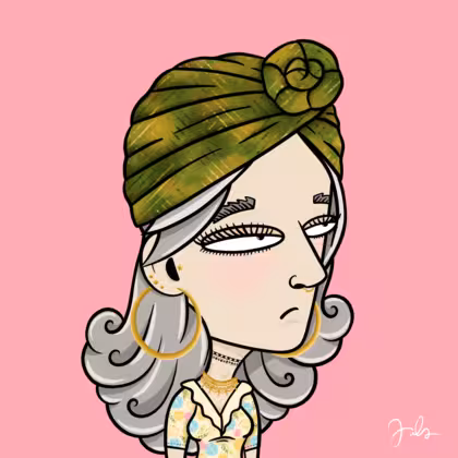 Collection Depressed Citizens Artist Juls Description ART. No team, no project, no future. Depressed Citizens is an urban & existential Art expression on Ordinals. In a parallel universe, "THEI" control us. DC unites against toxic society, encouraging critical thinking. 100% hand made collection that took Juls more than 6 months of daily work. Name Citizen#67 Origin Caucasian non hispanic Gender Woman Necklace Pre-Columbian necklace Hat Green turban Mustache Beard No beard Glasses No Glasses Earrings Tragus star earring Hair Style Long wavy Clothes Spring flowers v-neck shirt Tattoo No Tattoo Star Background Without stars